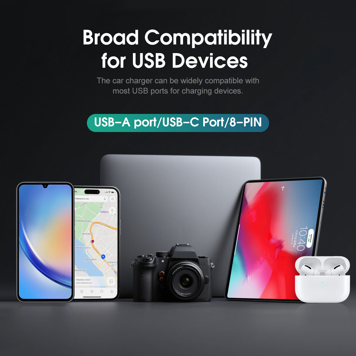 ESEEKGO C-35BK Retractable 60W Car Charger with 3 In 1 Cable (9/90)